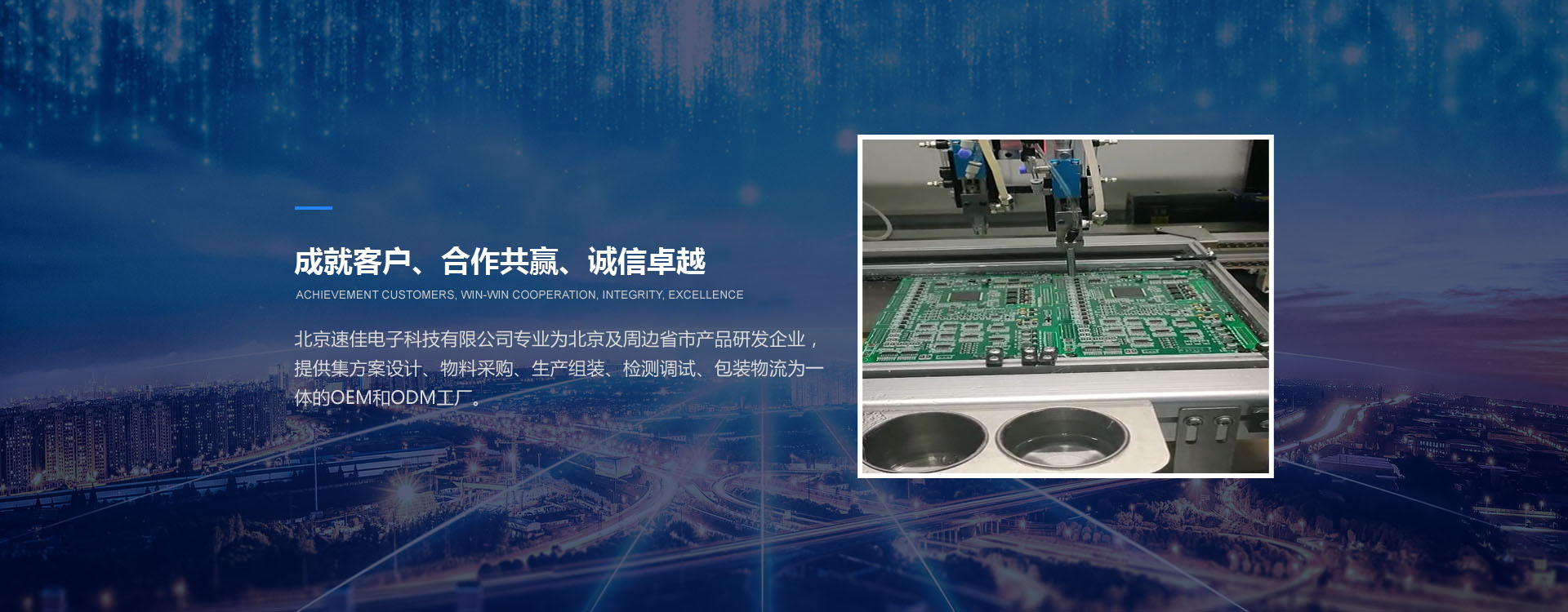 北京速佳電子科技有限公司專業(yè)為北京及周邊省市產(chǎn)品研發(fā)企業(yè),提供集方案設(shè)計(jì)、物料采購、生產(chǎn)組裝、檢測(cè)調(diào)試、包裝物流為一體的OEM和ODM工廠。